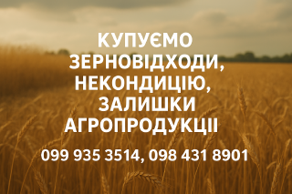 Купуємо зерновідходи, некондицію та залишки сільськогосподарської продукції