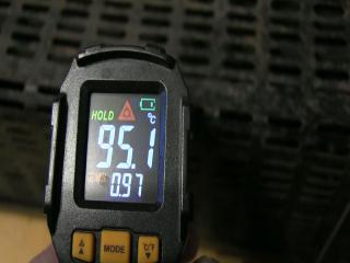 Рабочее состояние, второе фото - подключен через ваттметр. и 4 фото - пирометр показывает температуру в конце первой минуты после включения обогревателя.