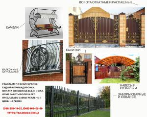 Ворота для въезда и ограждения: ворота распашные и ворота откатные, ворота жалюзи. Еврозаборы - цветные и серые. Заборы – кованые и сваренные, бетонные заборы, из профлиста, из ламелей (заборы жалюзи). Бордюры и виноградные столбы. Навесы и козырьки – кованые, сваренные, абсолютно любого размера. Балконные ограждения – кованые, сваренные. Столбы – прочная основа для вашего забора.